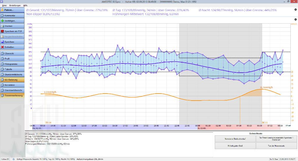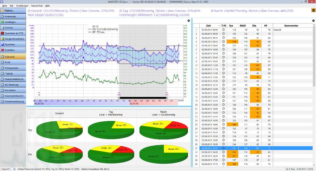 Komfortabel, schonend, exakt, leise und zuverlässig beschreiben das Langzeit-Blutdruckmesssystem ECGpro® Holter-RR USB von Amedtec. Aussagekräftige Daten garantieren Ihnen ein zuverlässiges, ambulantes Blutdruckmonotoring mit einer Auszeichnungsdauer von bis zu 72 Stunden. Für Ihre exakte Auswertung sind Grenztabellen für Kinder und Jugendliche sowie das Amedtec ECGpro® Datenmanagement integriert. Der niedrige, verkürzte und leise Manschettendruck (Auto-Feedback- Logic-Funktion) ermöglicht Ihren Patienten eine erhöhte Schlafqualität während der nächtlichen Messungen. Der USB-Anschluss garantiert Ihnen eine aussagekräftige und zuverlässige Auslesung der RR-Werte.