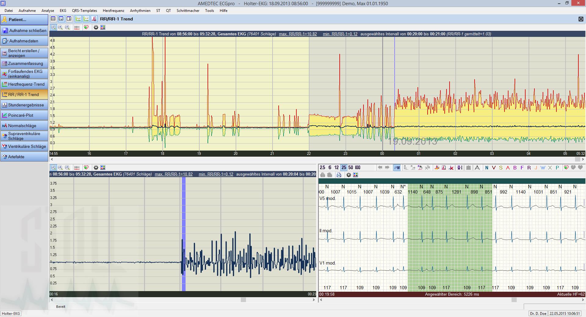 - Rhythmusanalyse mit EKG-spezifisch einstellbaren Parametern